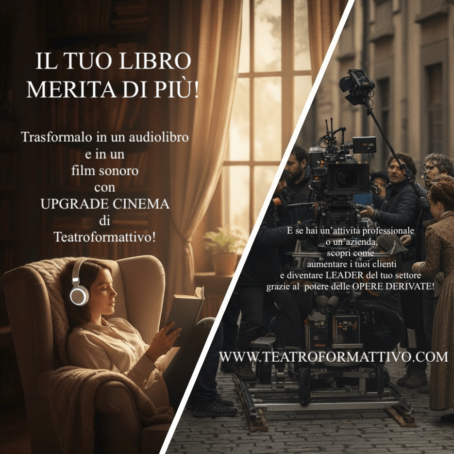 UPGRADE CINEMA aiuta IMPRENDITORI, PROFESSIONISTI, ARTISTI, AUTORI e SCRITTORI a raggiungere un pubblico di milioni di persone e potenziali clienti con il POTERE DELLE OPERE DERIVATE, aumentare la propria autorevolezza e prestigio, moltiplicare il fatturato, lasciare una traccia indelebile nel tempo e un’eredità preziosa per il futuro!