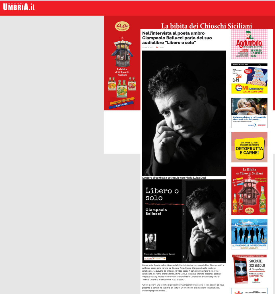 Oggi 14 Marzo sul Messaggero Umbria a pag.40 si parla dell’audiolibro LIBERO O SOLO di Giampaolo Bellucci, narrato da Gianluca Testa per Teatroformattivo – Dischi e Film