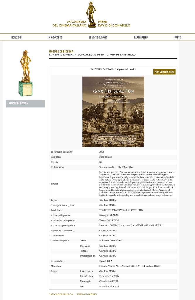 Se fossi poi interessato, anche in futuro, ad una promozione avanzata del tuo libro, che ti permetterà di accedere con la tua opera a importanti circuiti cinematografici come il Festival David di Donatello ed il più importante DATABASE CINEMATOGRAFICO MONDIALE presentato durante la notte degli Oscar, scopri il progetto UPGRADE CINEMA di Teatroformattivo e realizza con noi un CINEBOOKTRAILER.